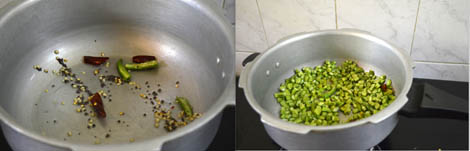 Though I am using the pressure pan, I am not going to pressure cook the beans as it will get over cooked.I have used the pressure pan without the weight. You can follow the same method using a heavy bottomed pan or kadai also